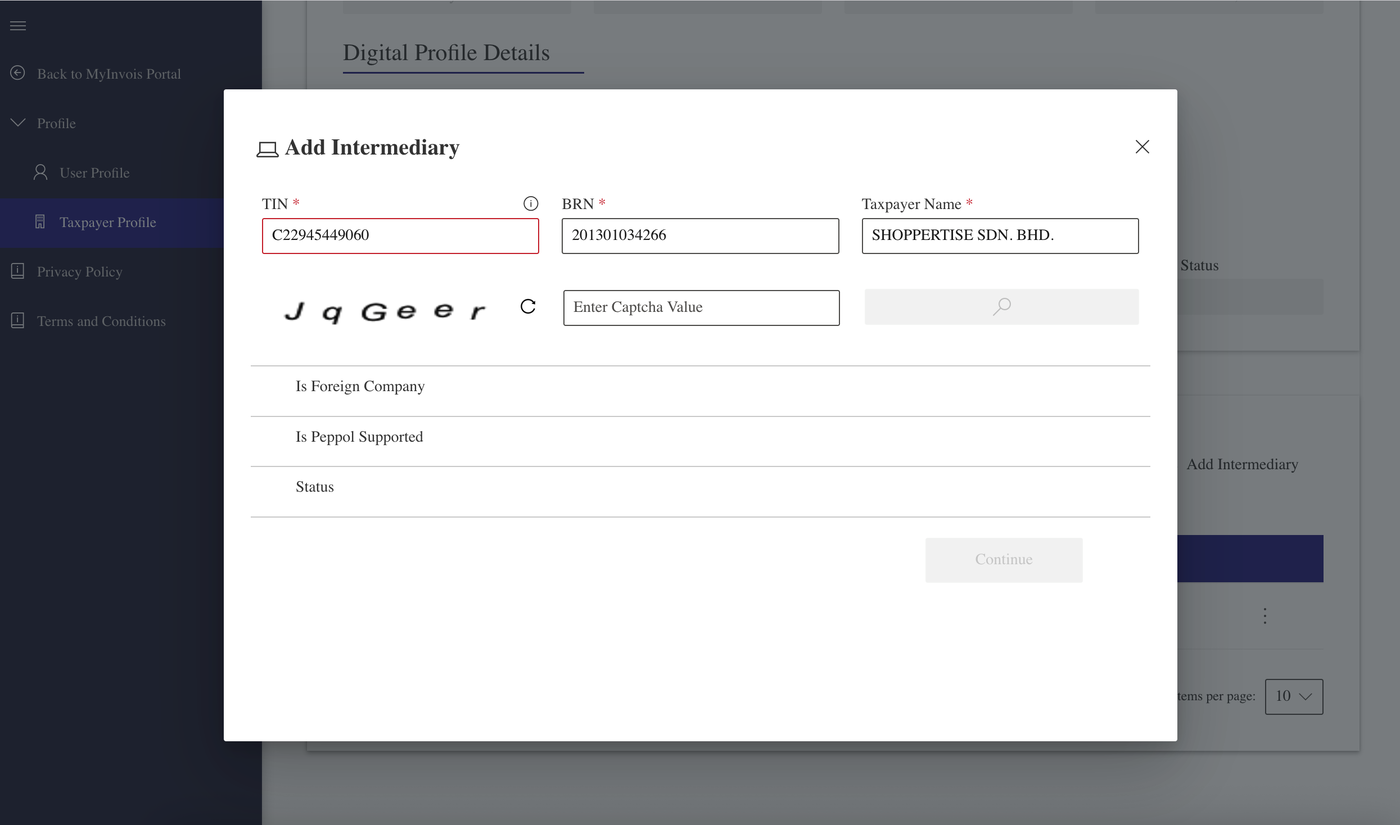 First of all, you need to register a MyInvois account. If you already have MyInvois account, you can skip this step and proceed to step 2 to add Shopperise as Intermediary.