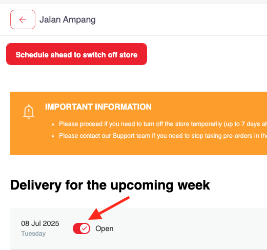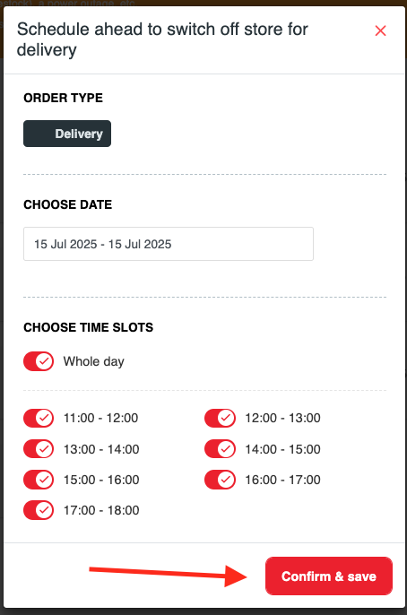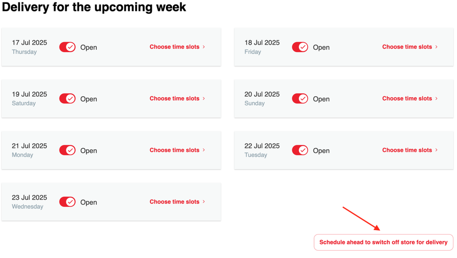 f) If you would like to scheduled dates to switch off delivery , can click below button