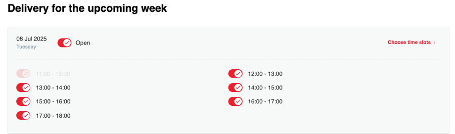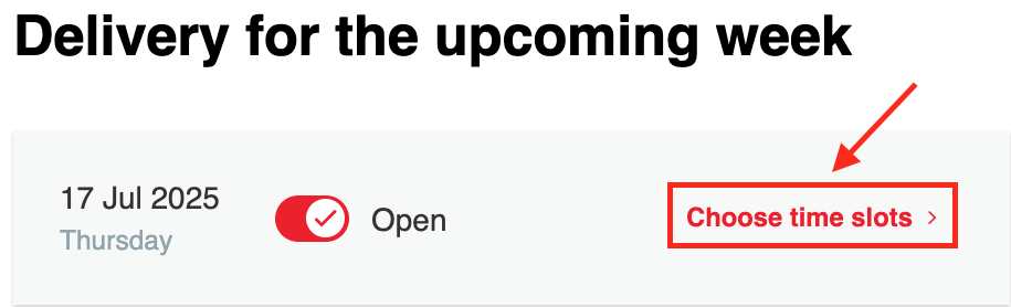 d) If you wish to pause store operations for a 'few hours' Tap on 'choose time slots'.