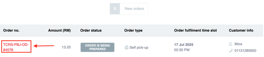 Locate the Order: From the orders list, choose the desired Order ID (e.g.,